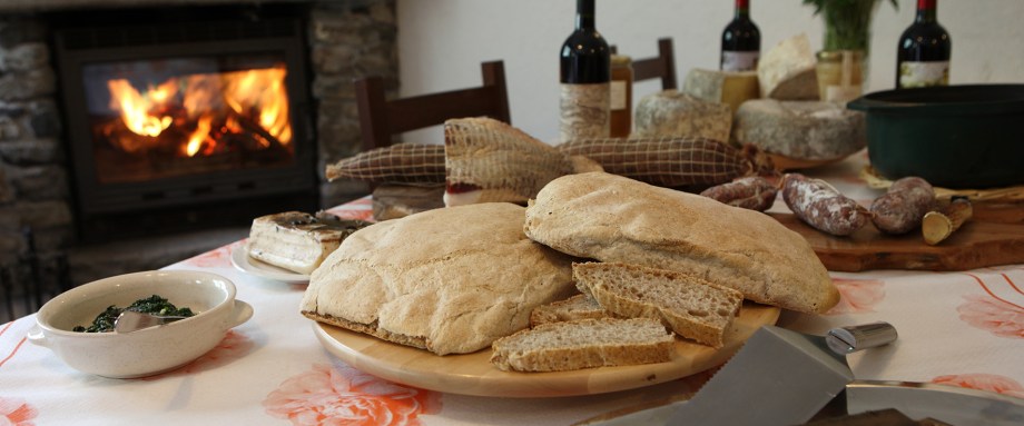 In primo luogo, il pane e tutti i prodotti da forno sono realizzati da noi con lievito naturale e con una selezione di antiche farine dei nostri campi macinate a pietra.